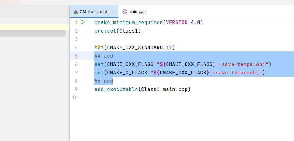 set(CMAKE_CXX_FLAGS "${CMAKE_CXX_FLAGS} -save-temps=obj")