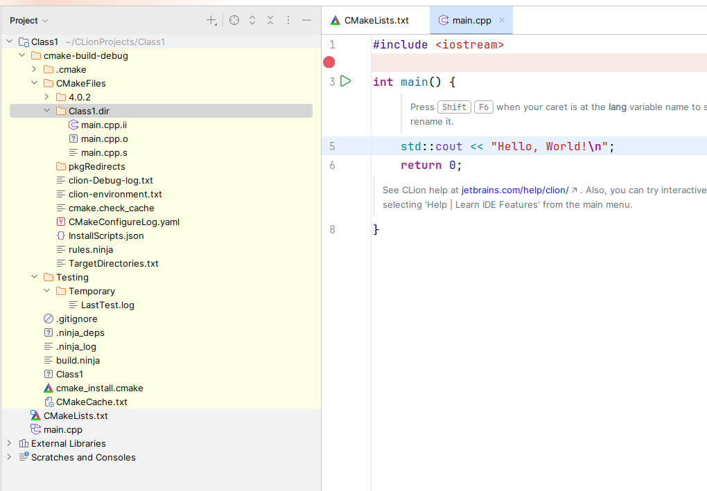 我们在cmakelist中直接去修改以下,就可以将程序的中间文件输出出来